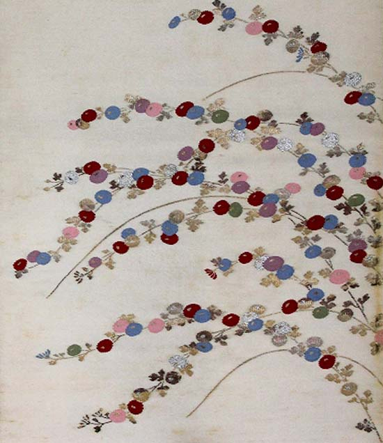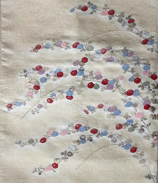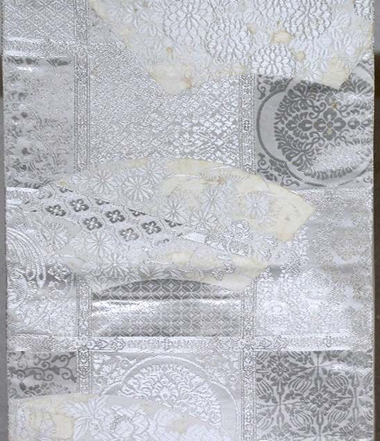 地色を濃い目に染め直し、模様のなかに金彩、銀彩で仕上げを加えれば着て頂けるようになります。