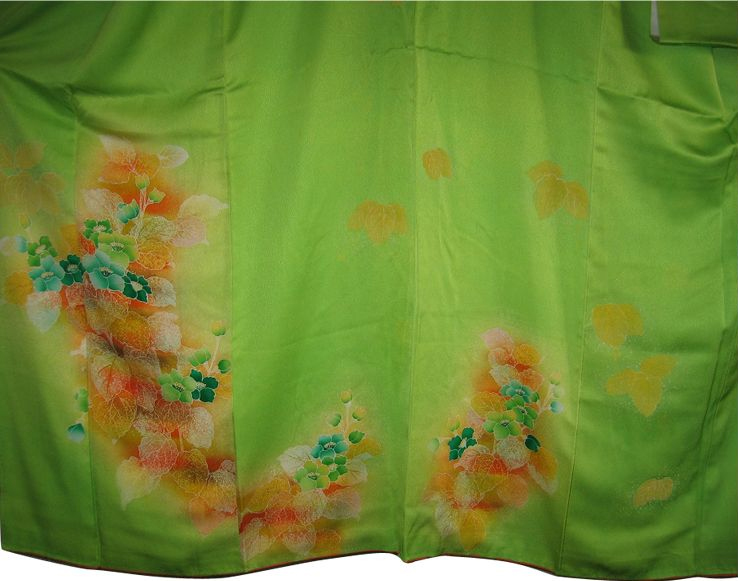 1、地色黄緑、あじさい模様