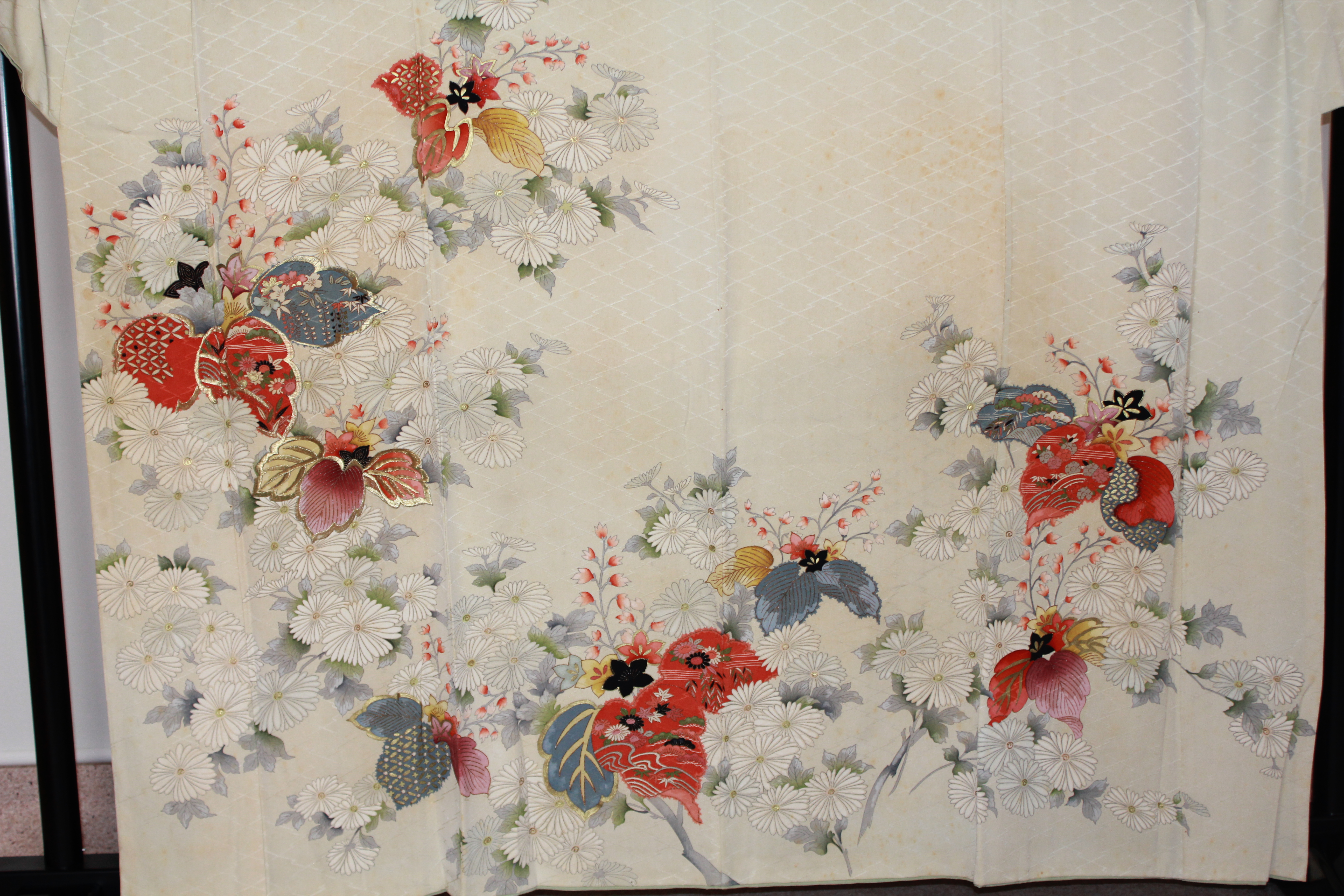 母が着用していた訪問着ですが、細いシミが多く着用出来る状態ではありません。
