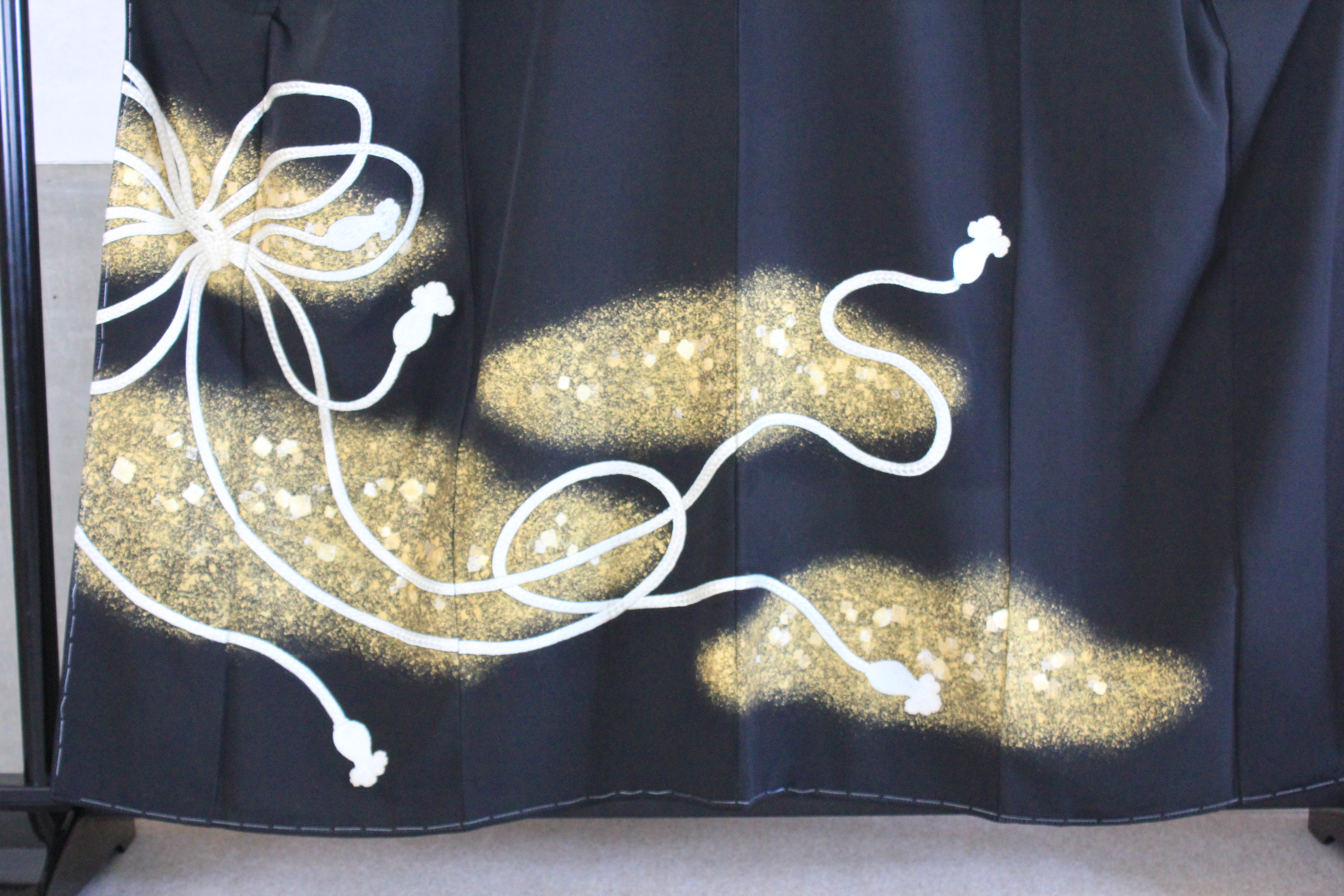 ありがとうございました。今届き、驚いたのは軽さ。広げて驚いたのは黒地と金粉の艶やかさです。母が京都で買った時の黒地に戻りました。あれから40年見事に染め上がり、伊達紐の柄が年月を物語り、また私の娘に譲れます。本当にありがとうございました。