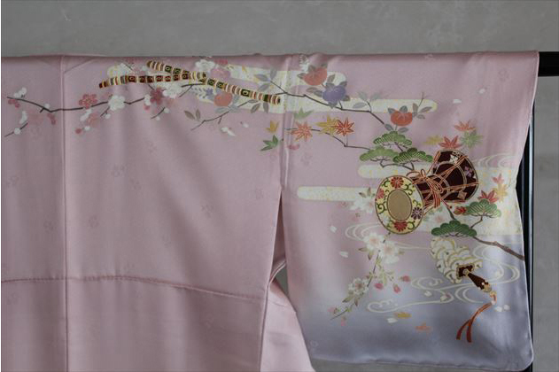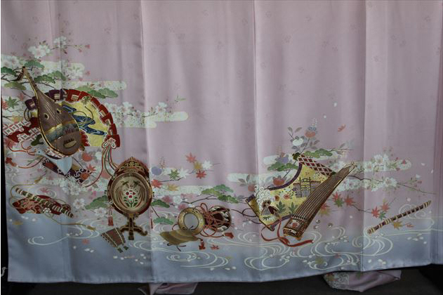 先日部分写真見て頂いた訪問着「古楽器四季草花」につきまして、