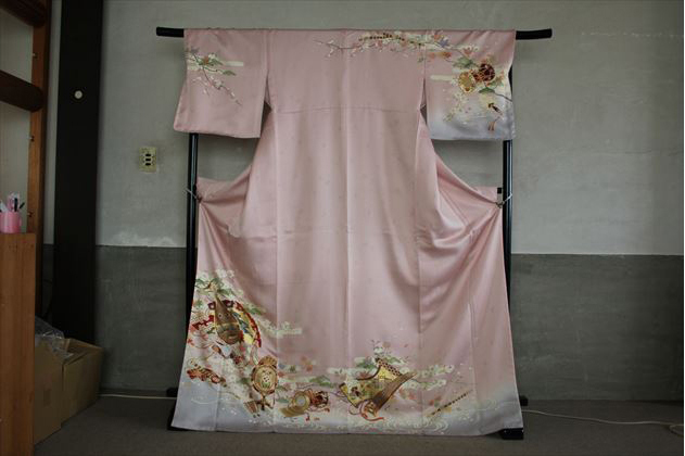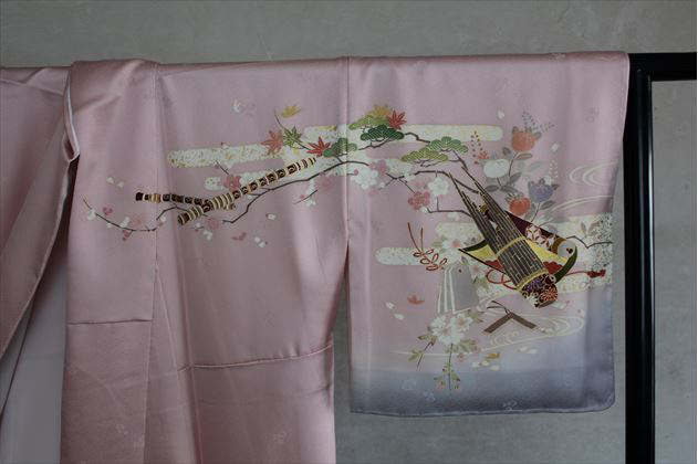 御注文頂きました訪問着「古楽器四季草花」出来上がりました。