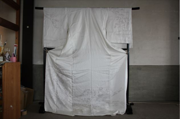 ご来訪いただいた折のお話に基づいて下絵、地色、友禅、刺繍など進めました。