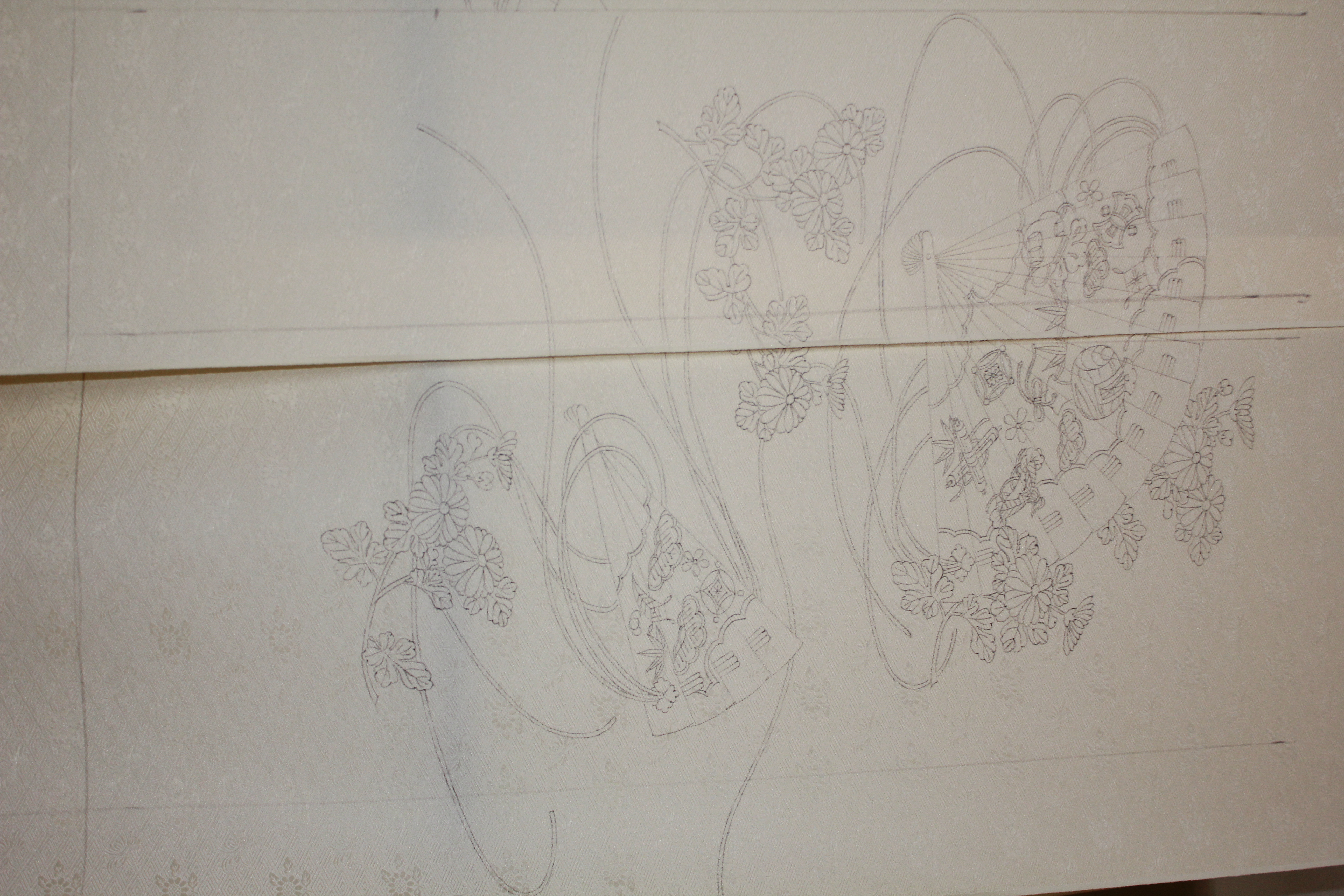 今回、仮絵羽せずに下絵をしていただいたとのことでしたが、柄はすべて綺麗につながっていて感動しました。