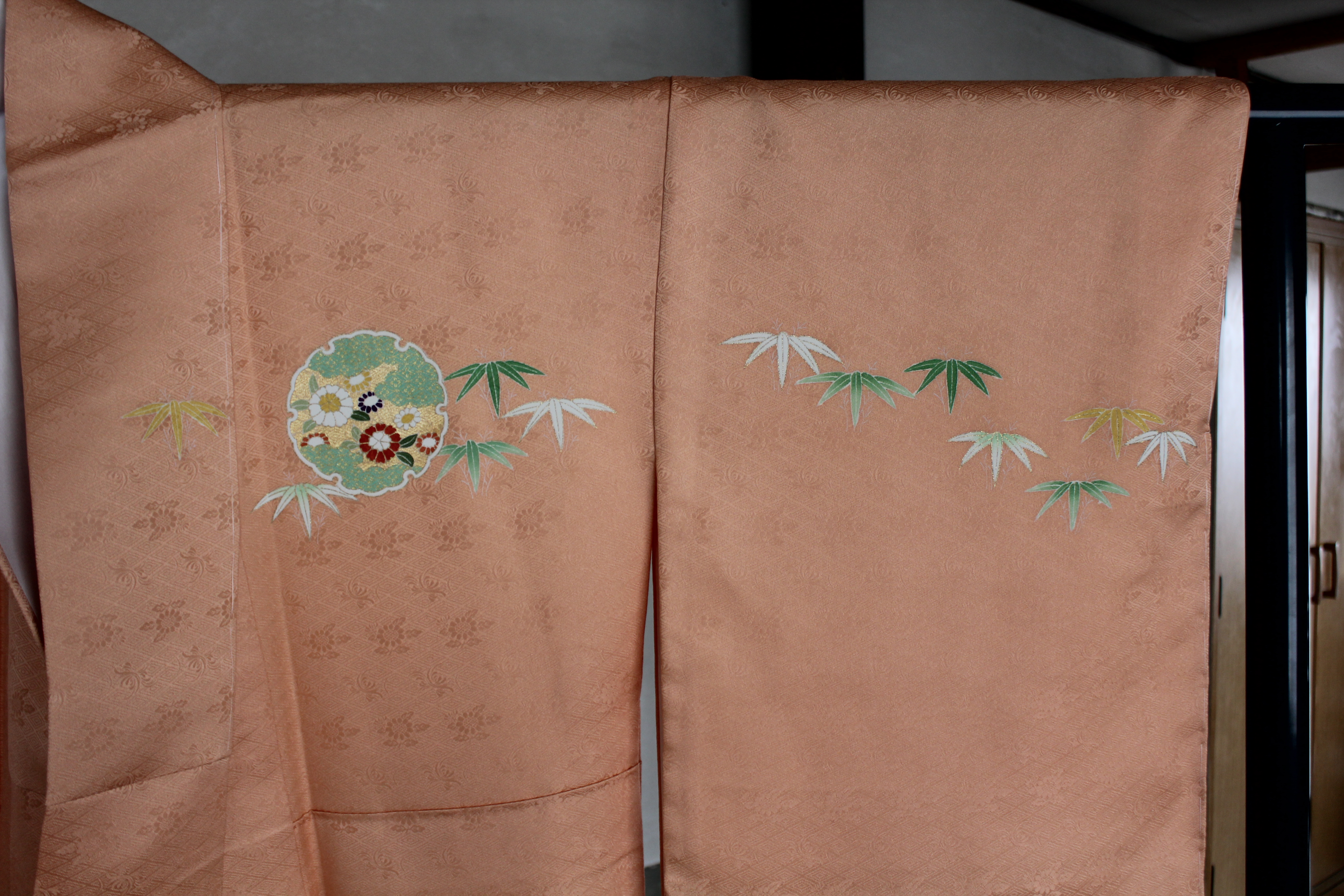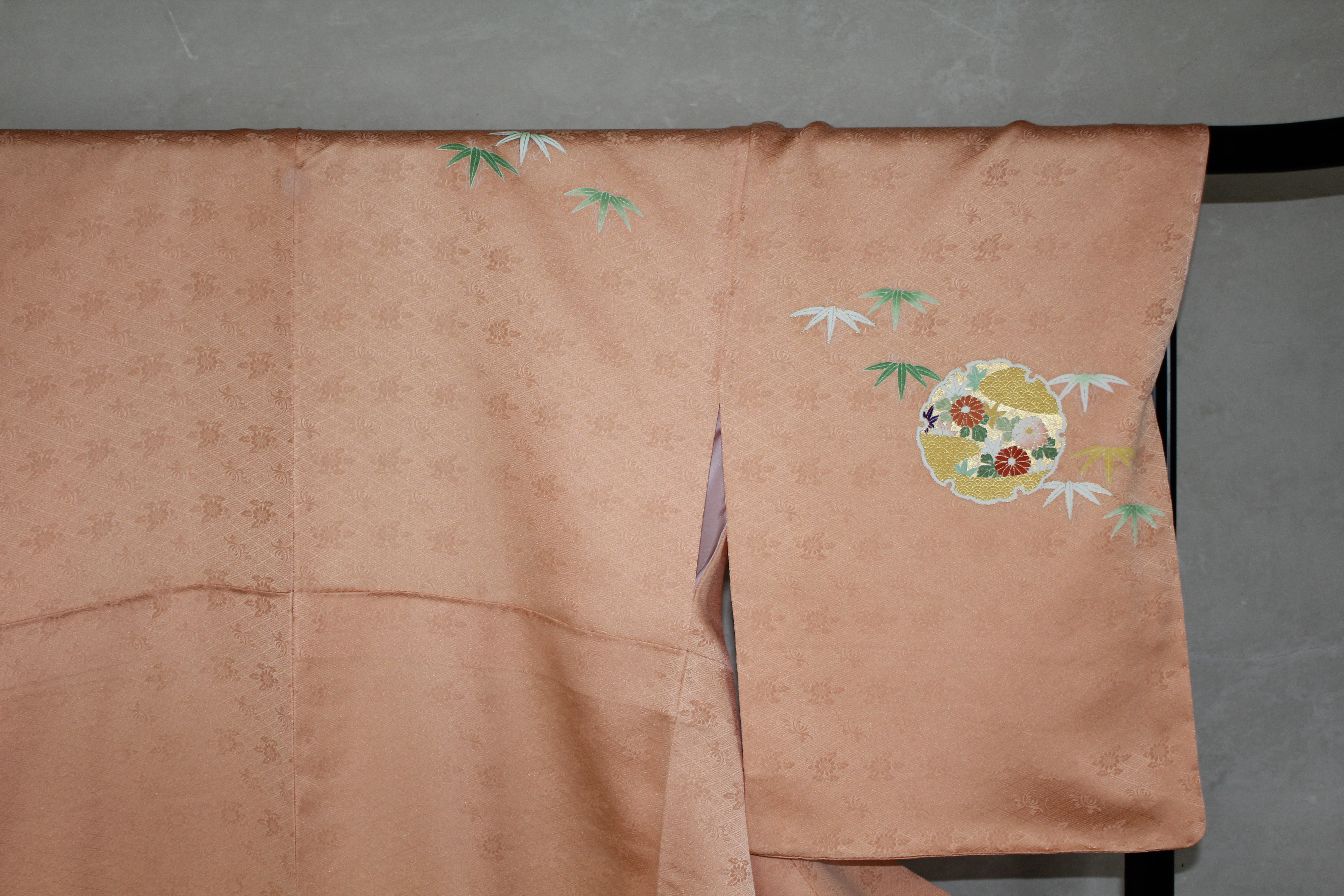 ⑶後ろ裾の雪輪には牡丹が描かれているように見えますが、こういう大きな花の場合は、