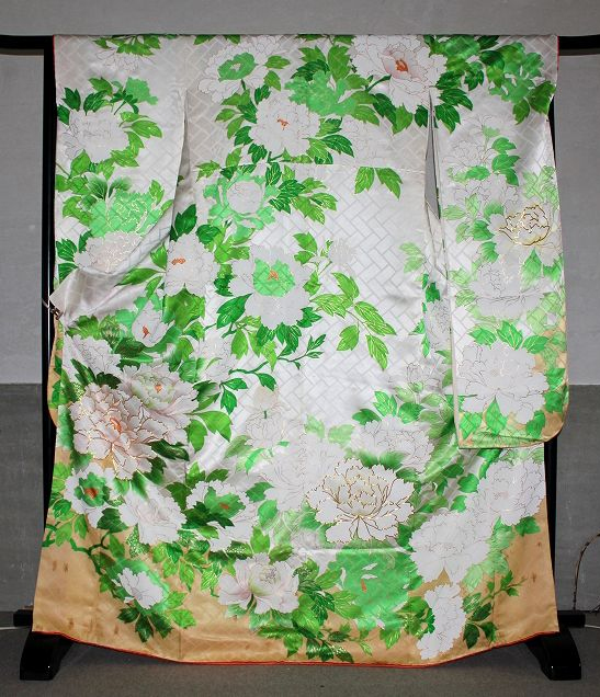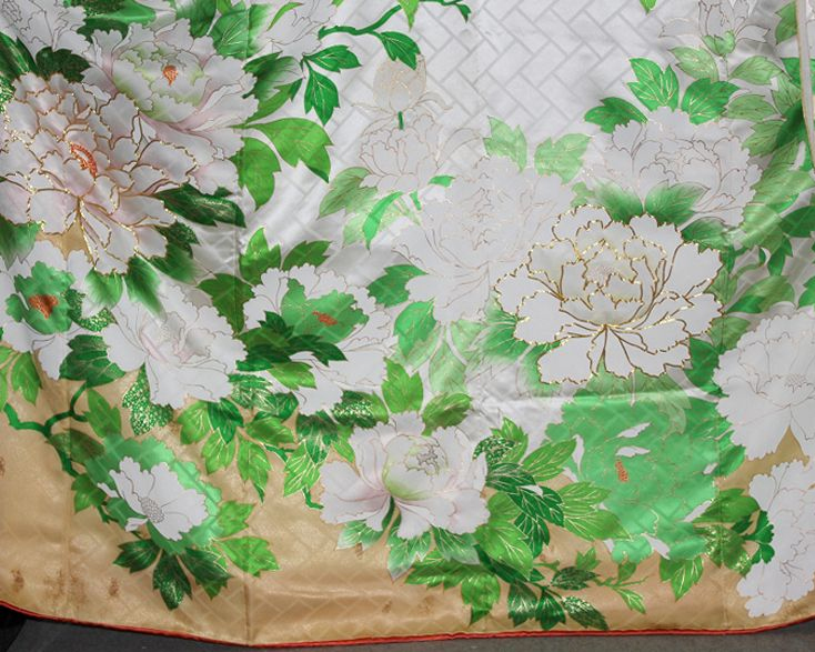 振袖はすべての金彩をやり直し、禿げていました裾、袖裾金彩も新しくやり直しました。また、胸、肩に金彩を加えるようご提案していましたが、袖の内側に金彩がありませんでしたのでここに新しく加えたほうが全体のバランスが良くなると判断しました。